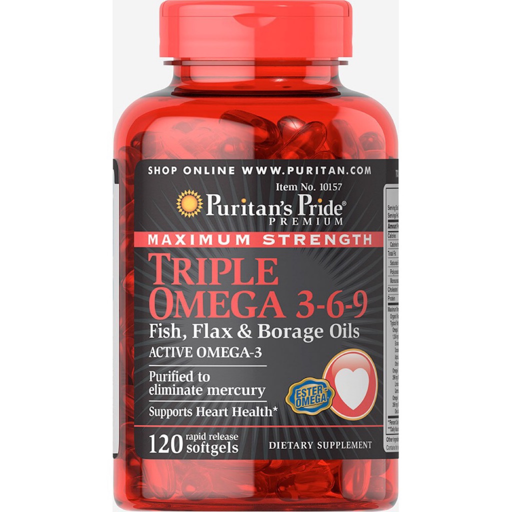Puritan's Pride Maximum Strength Triple Omega 3-6-9 Fish, Flax & Borage Oils [60/120/240 Softgels] | Shopee Singapore