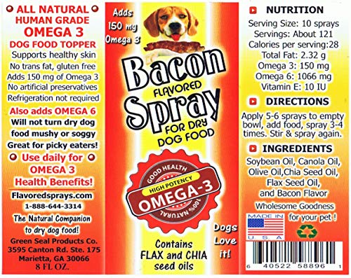Available in three sizes. At first I tried just spraying the chicken flavor on my salad. All Hello Sign in. Great for picky eaters. Premium all natural flavored Omega 3 sprays are holistic dog food toppers that add 150 mg of Omega 3 to your dogs diet in addition to Vitamin E K. Roast Beef flavored spray adds Omega 3 to every meal. Made in the USA.