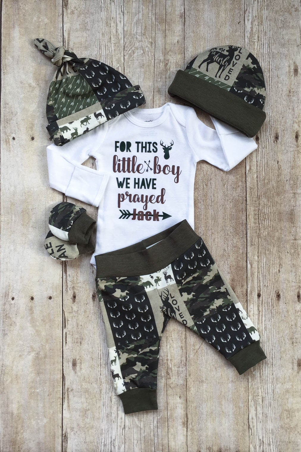 Great for bringing your baby boy home from the hospital or for newborn photos. Toddler Infant Baby Boy Hoodie Outfits Fashion Dinosaur Camo Hooded SweatshirtPants Fall Winter Tracksuit Clothes Set. Add to Favorites Loading Baby Boy Camo Deer Skull Bodysuit Gift Set. Newborn baby coming home outfitcamo boys coming home outfitbaby boy little man set. Baby Boy Clothes Personalized Baby Boy Outfit Monogram Baby Boy Camo Bodysuit and Pants Baby Outfit Newborn Boy Baby Gift. 46 out of 5 stars 1392. See sizing chart before choosing size. 5 out of 5 stars. King T-Shirt Camo Pants Boys Outfit - 0-6M.