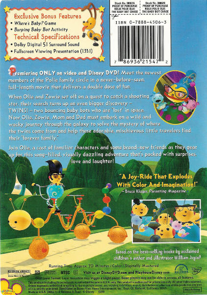 Opening to Rolie Polie Olie Hypno Eyes 2005 VHS. The Baby Bot Chase Video 2003 cast and crew credits including actors actresses directors writers and more. It was released in 2003 on DVD and VHS by Disney and re-released by Ka-Boom Entertainment.